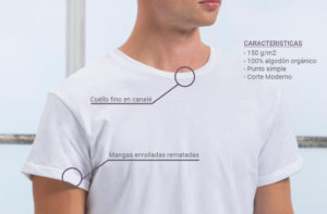 - Camiseta con certificados europeos de parámetros laborales y ecológicos